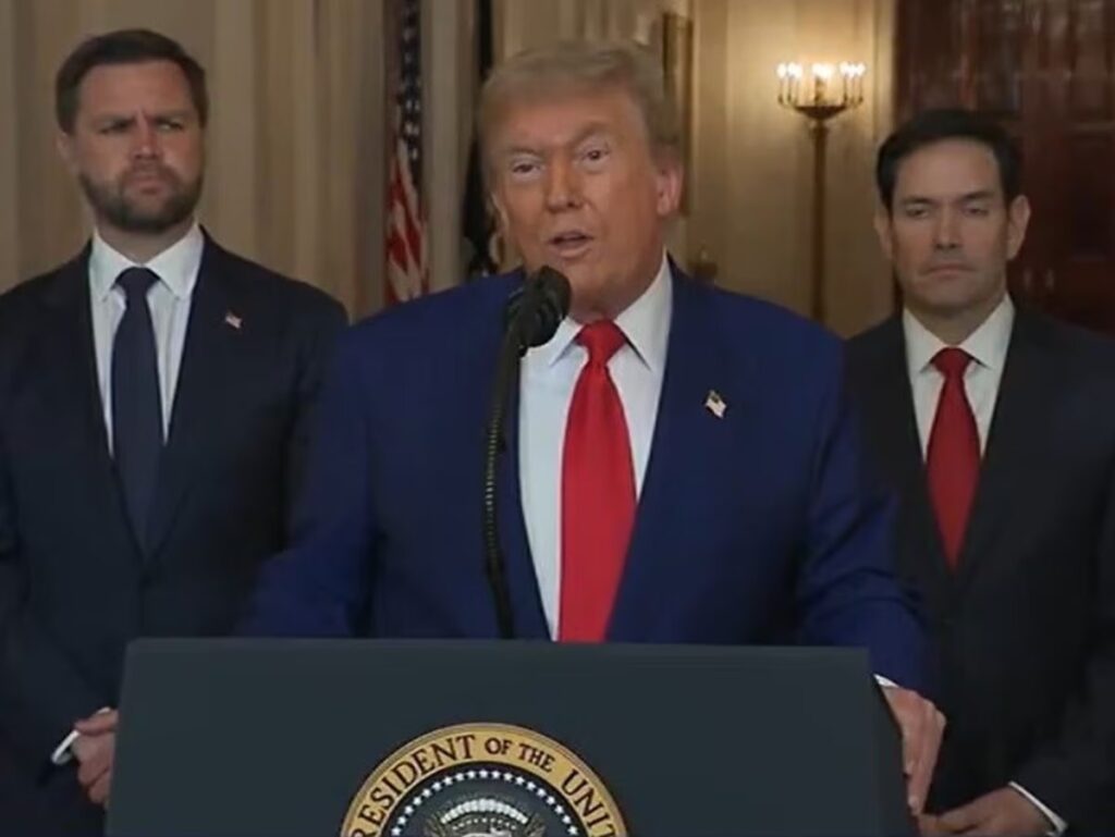 ट्रंप ने यह भी कहा कि हमने इसराइली प्रधानमंत्री बिन्यामिन नेतन्याहू के साथ ‘एक टीम के रूप में’ काम किया है। इसके पहले शनिवार की रात, ट्रंप ने घोषणा की कि अमेरिकी सेना ने ईरान में तीन परमाणु स्थलों-फोर्डो, नतांज़ और इस्फ़हान पर हमला किया है। फ़ोर्डो में पर्वतीय सुविधा और नतांज़ में संवर्धन संयंत्र ईरान के सबसे महत्वपूर्ण यूरेनियम संवर्धन केंद्रों में से हैं। इसरायली प्रधानमंत्री बिन्यामिन नेतन्याहू ने ट्रंप को बधाई देते हुए कहा कि ईरान पर हमला करने का ट्रंप का फैसला ‘इतिहास बदल देगा।’ यह बमबारी ह्वाइट हाउस द्वारा यह कहे जाने के दो दिन बाद हुई कि ट्रंप इस तरह के हमले के बारे में दो सप्ताह के भीतर फैसला करेंगे। ह्वाइट हाउस के एक अधिकारी ने रविवार को कहा कि इसराइल के प्रधानमंत्री इन हमलों के बारे में जानते थे।