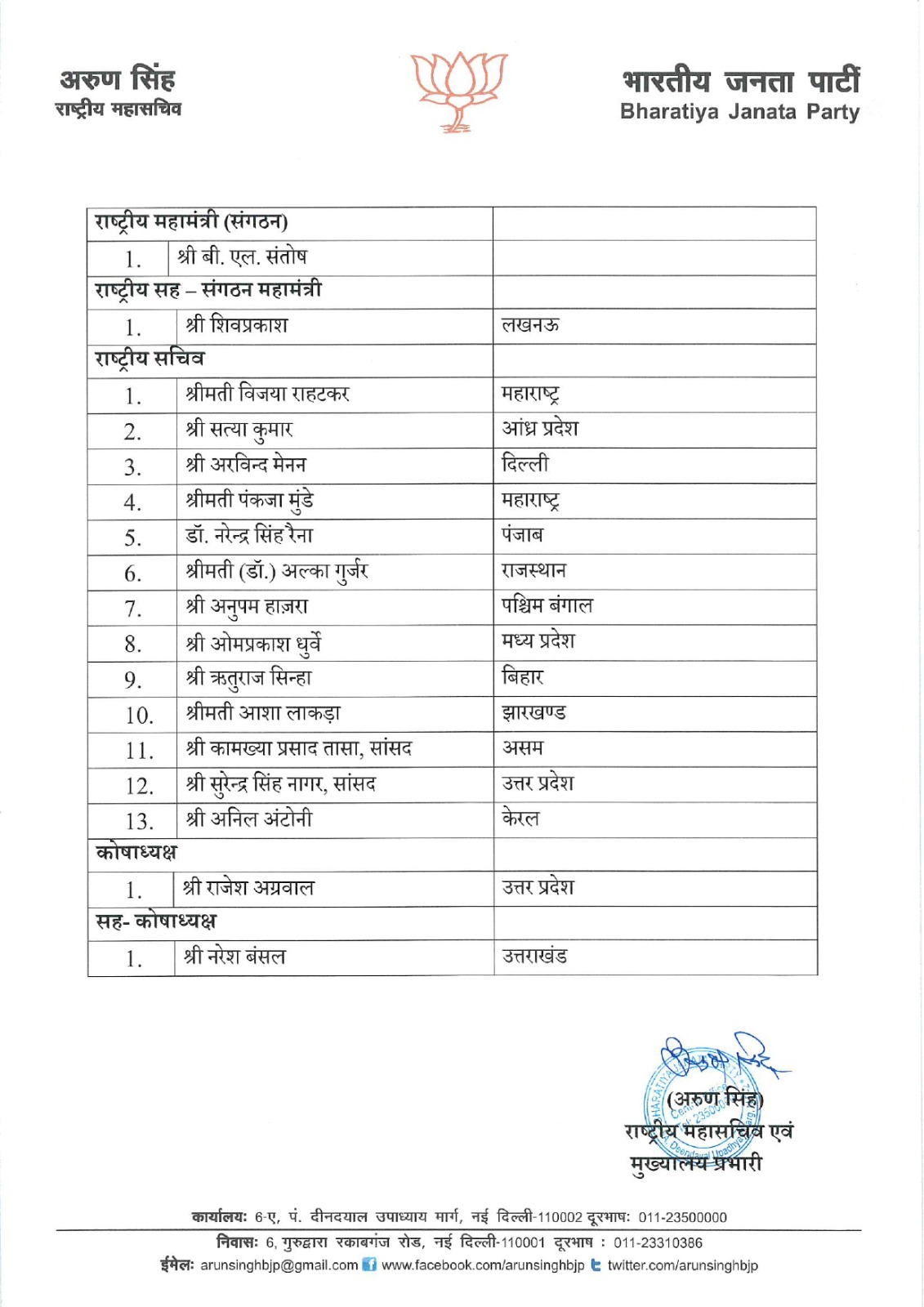 13 राष्ट्रीय सचिवों के नाम भी घोषित