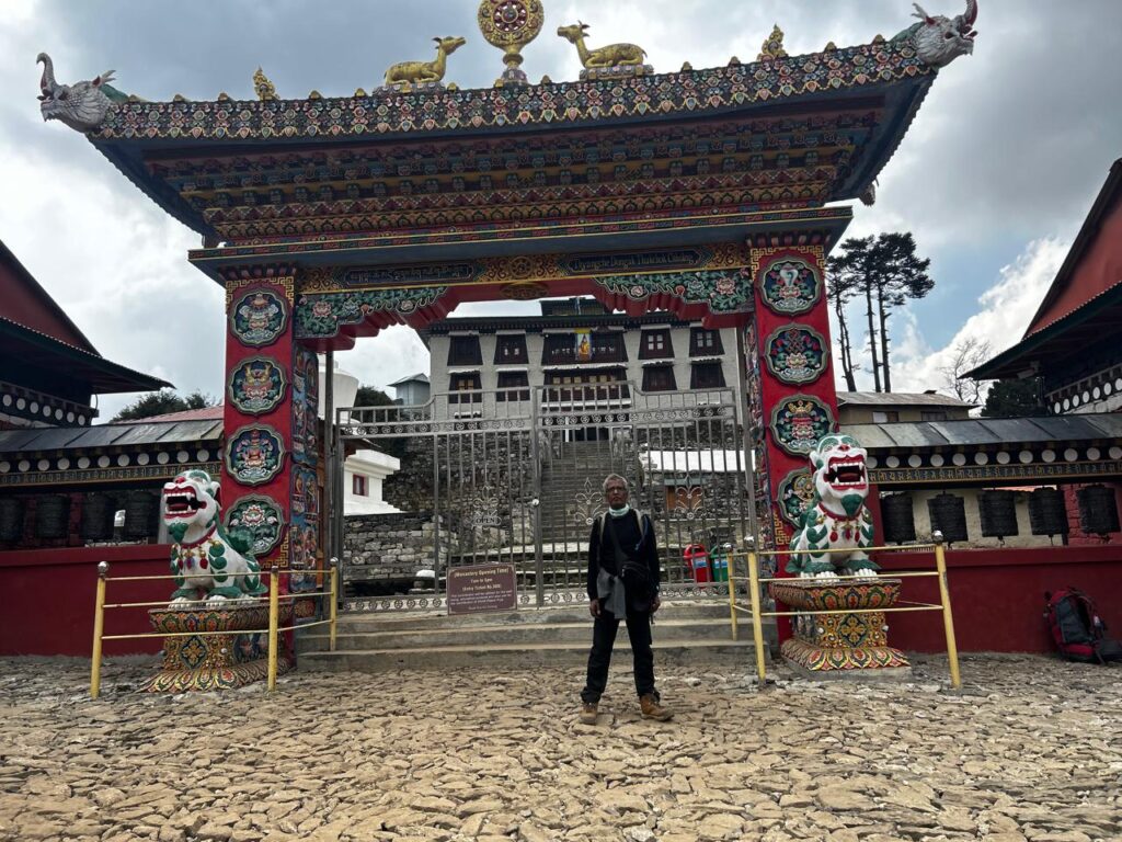 पाँचवाँ दिन : छह घंटे की ट्रेकिंग के बाद हम नामचे बाज़ार से तेंगबोचे/देबूचे पहुँचे जो कि 12687 फीट/3860 मीटर पर स्थित है। नामचे बाज़ार से यह 8 किलोमीटर दूर है। यहाँ से एवरेस्ट तो दिखना बंद हो जाता है पर नुप्तसे, लहोत्से, और अमा डब्लम और दूसरी चोटियाँ दिखने लगती हैं।
