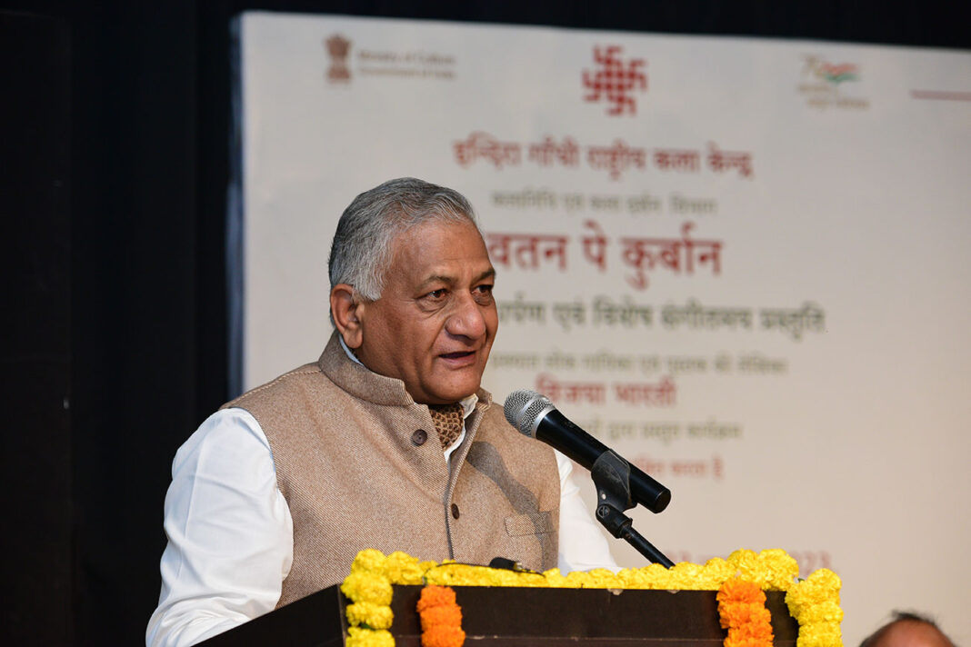 आपका अखबार ब्यूरो : इंदिरा गांधी राष्ट्रीय कला केंद्र के कलानिधि और कलादर्शन विभाग ने नेताजी सुभाष चंद्र बोस की जयंती ‘पराक्रम दिवस’ के अवसर पर “वतन पे कुर्बान” पुस्तक का विमोचन कार्यक्रम आयोजित किया। पुस्तक की लेखिका प्रसिद्ध लोकगायिका विजया भारती हैं। इस अवसर पर आईजीएनसीए की सुभाष चंद्र बोस पर आधारित पुस्तकों का भी विमोचन किया गया। कार्यक्रम के मुख्य अतिथि केंद्रीय सड़क परिवहन व राजमार्ग और नागरिक उड्डयन राज्यमंत्री तथा पूर्व सेनाध्यक्ष जनरल विजय कुमार सिंह थे। विशिष्ट अतिथि सुलभ इंटरनेशनल के संस्थापक और अध्यक्ष पद्मभूषण श्री विंदेश्वर पाठक थे। कार्यक्रम की अध्यक्षता आईजीएनसीए के सदस्य सचिव डॉ. सच्चिदानंद जोशी ने की। कार्यक्रम के प्रारम्भ में आईजीएनसीए के कलानिधि विभाग के अध्यक्ष और राष्ट्रीय नाट्य विद्यालय के निदेशक प्रो. रमेश चंद्र गौड़ ने अतिथियों का स्वागत किया। कार्यक्रम का संचालन पत्रकार एवं कवि पं. सुरेश नीरव ने किया। इस कार्यक्रम में प्रसिद्ध गीतकार व साहित्यकार श्री बुद्धिनाथ मिश्रा ने भी अपने विचार व्यक्त किए। कार्यक्रम के अंत में विजया भारती और उनकी टीम ने “वतन पे कुर्बान” में संकलित कुछ कविताओं की संगीतमय प्रस्तुति भी दी।