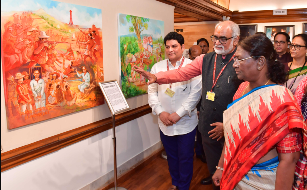 भारत की माननीय राष्ट्रपति श्रीमती द्रौपदी मुर्मू ने राष्ट्रपति के रूप में एक वर्ष का कार्यकाल पूरा करने के उपलक्ष्य में 25 जुलाई, मंगलवार को राष्ट्रपति भवन के मार्बल हॉल में ‘जनजातीय दर्पण’ गैलरी का उद्घाटन किया। ‘जनजातीय दर्पण’ गैलरी राष्ट्रपति भवन और इंदिरा गांधी राष्ट्रीय कला केंद्र (आईजीएनसीए) का एक सहयोगात्मक प्रयास है। इस गैलरी को आईजीएनसीए के जनपद सम्पदा प्रभाग ने क्यूरेट और क्रियान्वित किया है। इस अवसर पर आईजीएनसीए के सदस्य सचिव डॉ. सच्चिदानंद जोशी सहित जनपद सम्पदा के विभागाध्यक्ष प्रो. के. अनिल कुमार और उनकी टीम भी उपस्थित थी।
