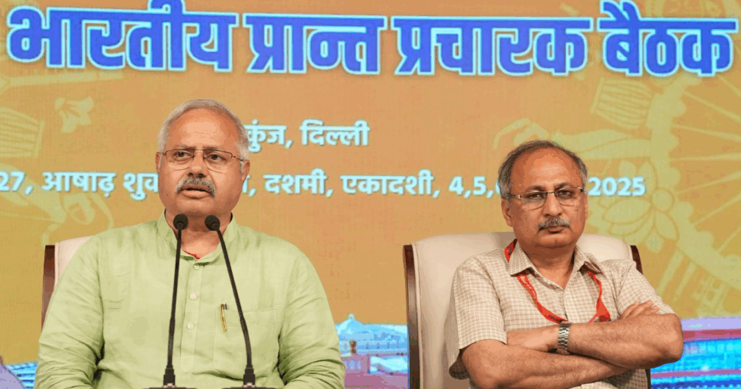 केशव कुंज, दिल्ली में आयोजित राष्ट्रीय स्वयंसेवक संघ की तीन दिवसीय (4-6 जुलाई) अखिल भारतीय प्रांत प्रचारक बैठक में राष्ट्रीय संघ ने कई महत्त्वपूर्ण निर्णय लिए। केशव कुंज में आयोजित एक प्रेस ब्रीफिंग में अखिल भारतीय प्रचार प्रमुख सुनील आंबेकर ने बैठक के सम्बंध में जानकारी प्रदान की। बैठक में सरसंघचालक मोहन जी भागवत, सरकार्यवाह दत्तात्रेय होसबाले का मार्गदर्शन सभी कार्यकर्ताओं को प्राप्त हुआ।