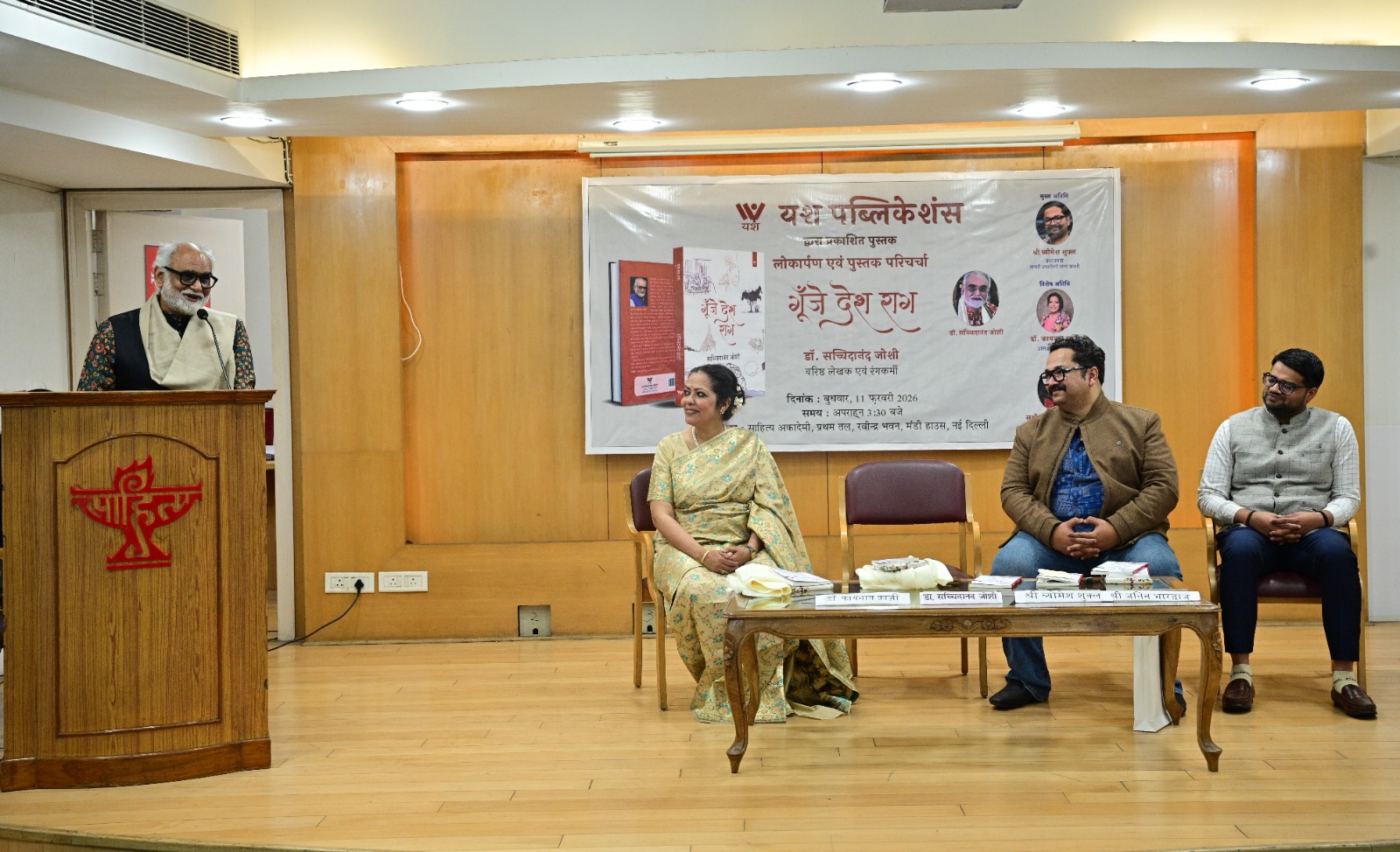 वरिष्ठ लेखक, रंगकर्मी और इन्दिरा गांधी राष्ट्रीय कला केन्द्र के सदस्य सचिव डॉ. सच्चिदानंद जोशी की पुस्तक ‘गूँजे देश राग’ का लोकार्पण एवं पुस्तक-परिचर्चा कार्यक्रम साहित्य अकादेमी, नई दिल्ली में हुआ। पुस्तक का प्रकाशन यश पब्लिकेशंस ने किया है। यह पुस्तक डॉ. सच्चिदानंद जोशी की विदेश यात्राओं से जुड़े अनुभवों पर केन्द्रित है। कार्यक्रम के मुख्य अतिथि थे काशी नागरी प्रचारिणी सभा के प्रधानमंत्री व्योमेश शुक्ल और विशेष अतिथि थीं प्रख्यात ट्रैवल ब्लॉगर डॉ. कायनात क़ाज़ी। इस अवसर पर, यश पब्लिकेशन के निदेशक जतिन भारद्वाज भी उपस्थित रहे।