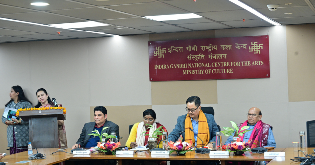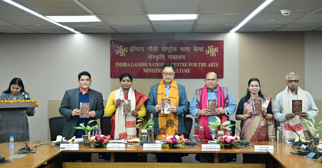 इन्दिरा गांधी राष्ट्रीय कला केन्द्र (आईजीएनसीए) के जनपद सम्पदा विभाग ने ‘ज्ञानपथ शृंखला’ के अंतर्गत एक महत्त्वपूर्ण पुस्तक ‘भारतीय जनजातीय समाज (शिक्षित एवं सशक्त भूमिका में आत्मनिर्भरता की ओर)’ के लोकार्पण एवं चर्चा सत्र का आयोजन किया। कार्यक्रम के मुख्य अतिथि केन्द्रीय संसदीय कार्य एवं अल्पसंख्यक कार्य मंत्री श्री किरन रिजिजू थे। वहीं विशिष्ट अतिथि थे राष्ट्रीय अनुसूचित जनजातीय आयोग के अध्यक्ष श्री अंतर सिंह आर्य। उन्होंने जनजातीय समाज से जुड़े समकालीन विमर्श, नीतिगत प्रयासों तथा सांस्कृतिक संरक्षण की आवश्यकता पर प्रकाश डाला। विशेष अतिथि के रूप में राष्ट्रीय अनुसूचित जनजातीय आयोग की सदस्य डॉ. आशा लकड़ा उपस्थित रहीं, जिन्होंने पुस्तक की विषयवस्तु को सामाजिक न्याय और समावेशी विकास के व्यापक परिप्रेक्ष्य में रेखांकित किया। पुस्तक की लेखिका हैं समाजशास्त्री एवं शिक्षिका डॉ. स्वीटी तिवारी। कार्यक्रम का स्वागत वक्तव्य आईजीएनसीए के जनपद सम्पदा विभाग के अध्यक्ष प्रो. के. अनिल कुमार ने दिया। उन्होंने ‘ज्ञानपथ शृंखला’ की अवधारणा पर प्रकाश डालते हुए इसे समकालीन बौद्धिक संवाद का एक सशक्त मंच बताया। इस अवसर वनवासी कल्याण आश्रम के श्री सुरेश कुलकर्णी की भी गरिमामय उपस्थिति रही।