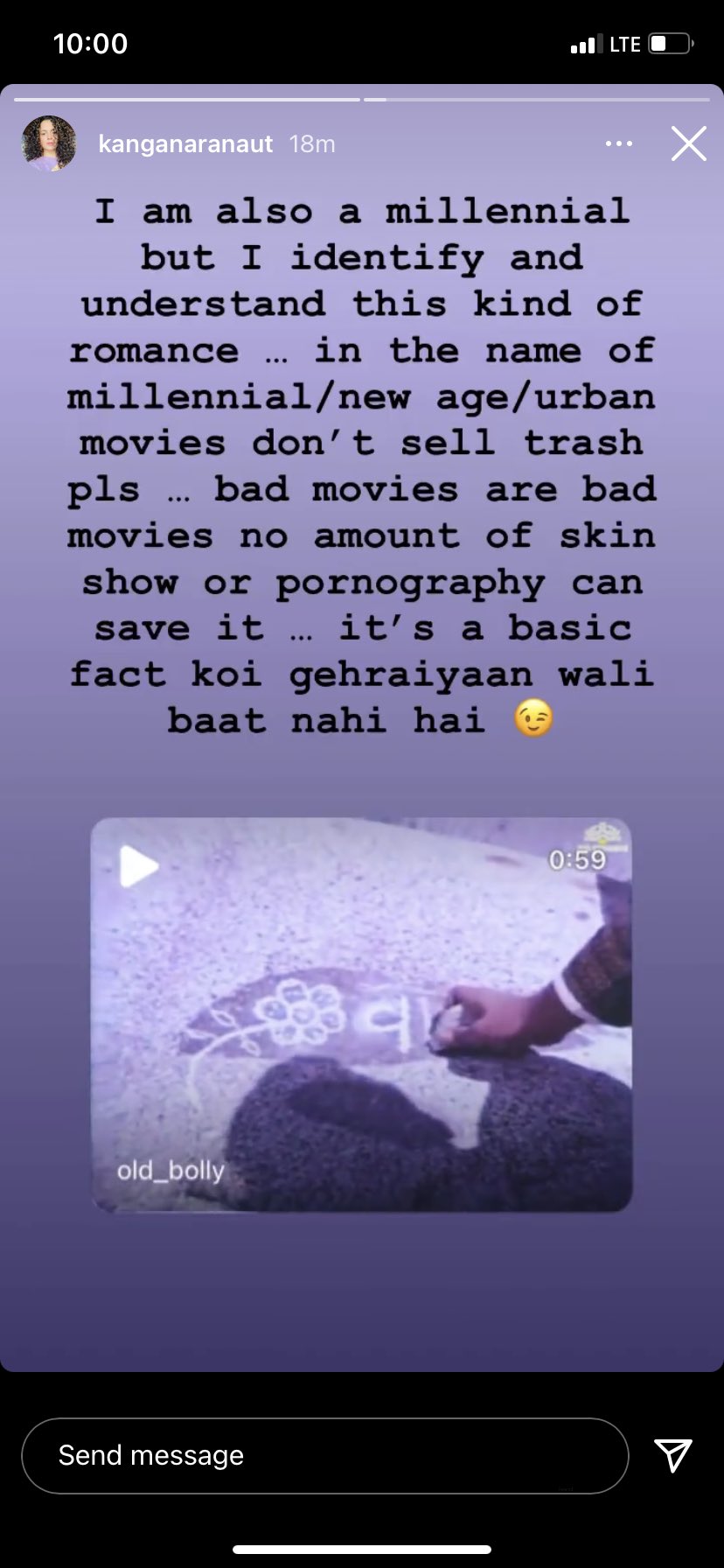 कंगना रनोत को करण जौहर और दीपिका पादुकोण से ‘विशेष लगाव’ है, यह बात किसी से छिपी नहीं है और कंगना यह समय-समय पर जाहिर भी करती रहती हैं। कुछ दिन पहले एक पत्रकार ने प्रेस कांफ्रेंस में दीपिका को लेकर कंगना से सवाल पूछा था, तो उन्होंने ने टका-सा जवाब दे दिया कि वह दीपिका की फिल्म को प्रमोट करने के लिए नहीं आई हैं। अब जबकि फिल्म रिलीज हो चुकी है, कंगना ने करन और दीपिका की ‘गहराइयां’ की तीखी आलोचना की है। कंगना ने इस फिल्म को कचरा बताया है। हालांकि उन्होंने न तो दीपिका का नाम लिया है, न करन का, लेकिन पोस्ट से एकदम स्पष्ट है कि वह किसके बारे में बात कर रही हैं। उन्होंने अपनी इंस्टा स्टोरी में लिखा है- ‘मैं भी एक मिलेनियल हूं, लेकिन इस तरह के रोमांस को जानती और समझती हूं। मिलेनियल/ नए जमाने/ शहरी फिल्मों के नाम पर कृपया कचरा न बेचें। बुरी फिल्में, बुरी फिल्में ही होती हैं। अंग प्रदर्शन या पोर्नोग्राफी की कितनी भी मात्रा डाल दो, वो उसे बचा नहीं सकती। यह एक बुनियादी तथ्य है कि इसमें कोई गहराइयां वाली बात नहीं है।’