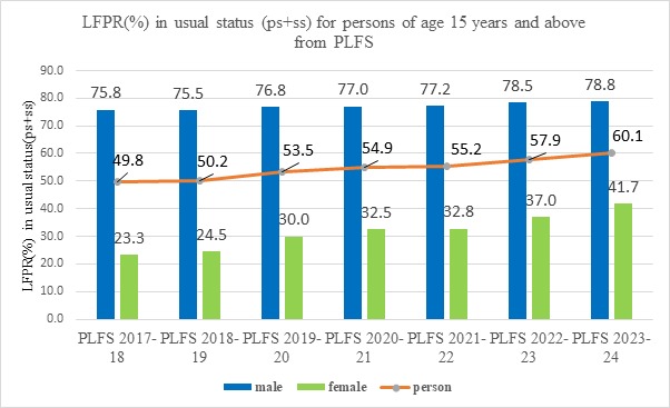 PLFS के अनुसार, 2017-18 से 2023-24 के बीच श्रम बल भागीदारी दर 49.8% से बढ़कर 60.1% हो गई है, जबकि बेरोजगारी दर 6.0% से घटकर 3.2% रह गई है। युवा बेरोजगारी दर भी इसी अवधि में 17.8% से घटकर 10.2% हो गई है, जो वैश्विक औसत से बेहतर है। इसके अलावा, रोजगार की गुणवत्ता और स्थायित्व में भी सुधार दर्ज किया गया है। आकस्मिक मजदूरों की औसत दैनिक मजदूरी में 47% और नियमित वेतनभोगियों की मासिक आय में लगभग 28% की वृद्धि हुई है। सरकार ने यह भी बताया कि 2017-18 से 2023-24 के बीच देश में 16.83 करोड़ रोजगार सृजित हुए हैं और औपचारिक रोजगार में भी उल्लेखनीय वृद्धि हुई है। ईपीएफओ के आंकड़ों के अनुसार, अप्रैल 2025 तक कुल 7.73 करोड़ नए सदस्य जुड़े हैं।